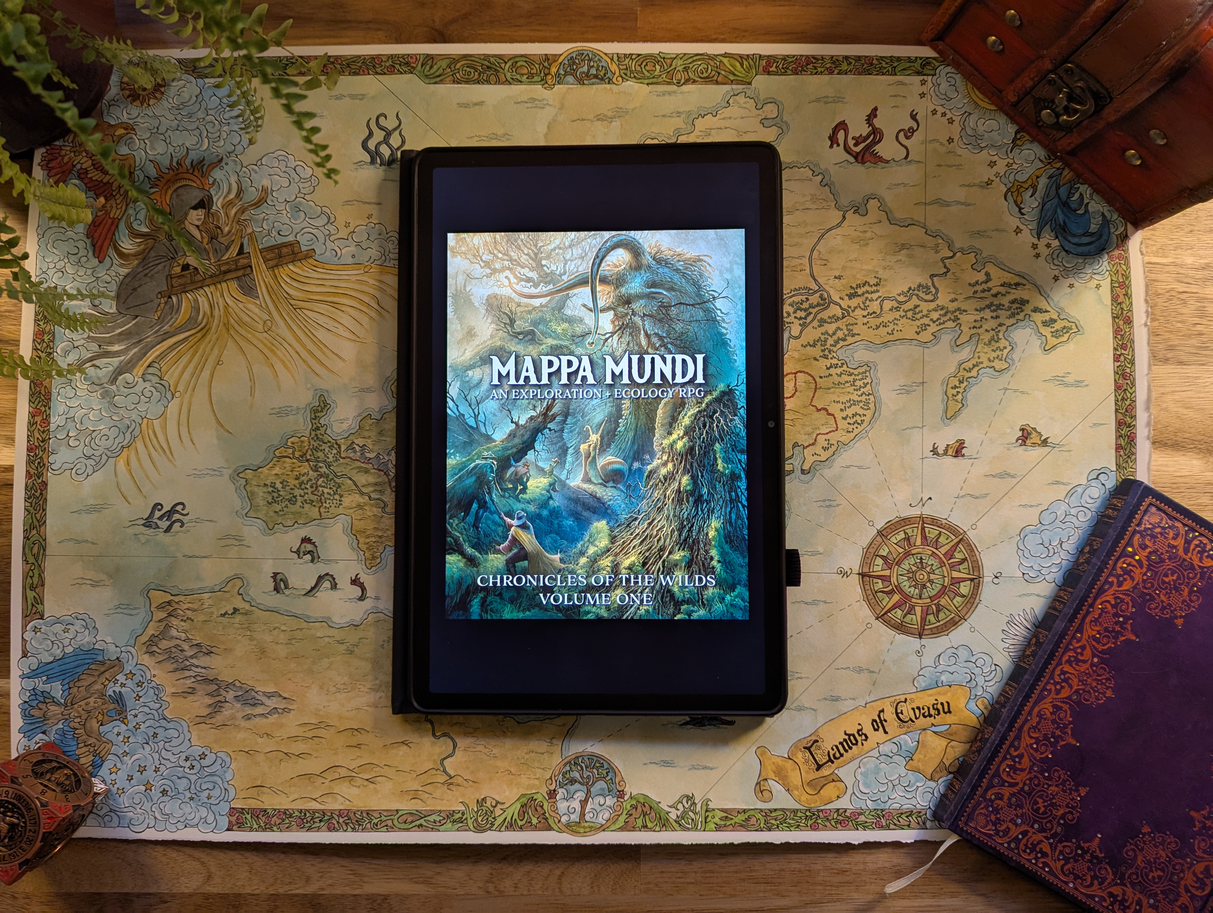 Mappa Mundi - An Exploration + Ecology RPG is a tabletop roleplaying game about exploring a world recovering from a century of ecological disaster and cultural isolation, a world populated by fantastical Monsters and Creatures that roam the Wilds, a world shaped by Fate.